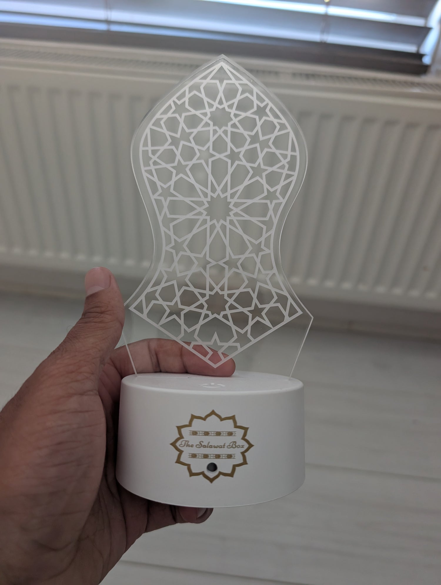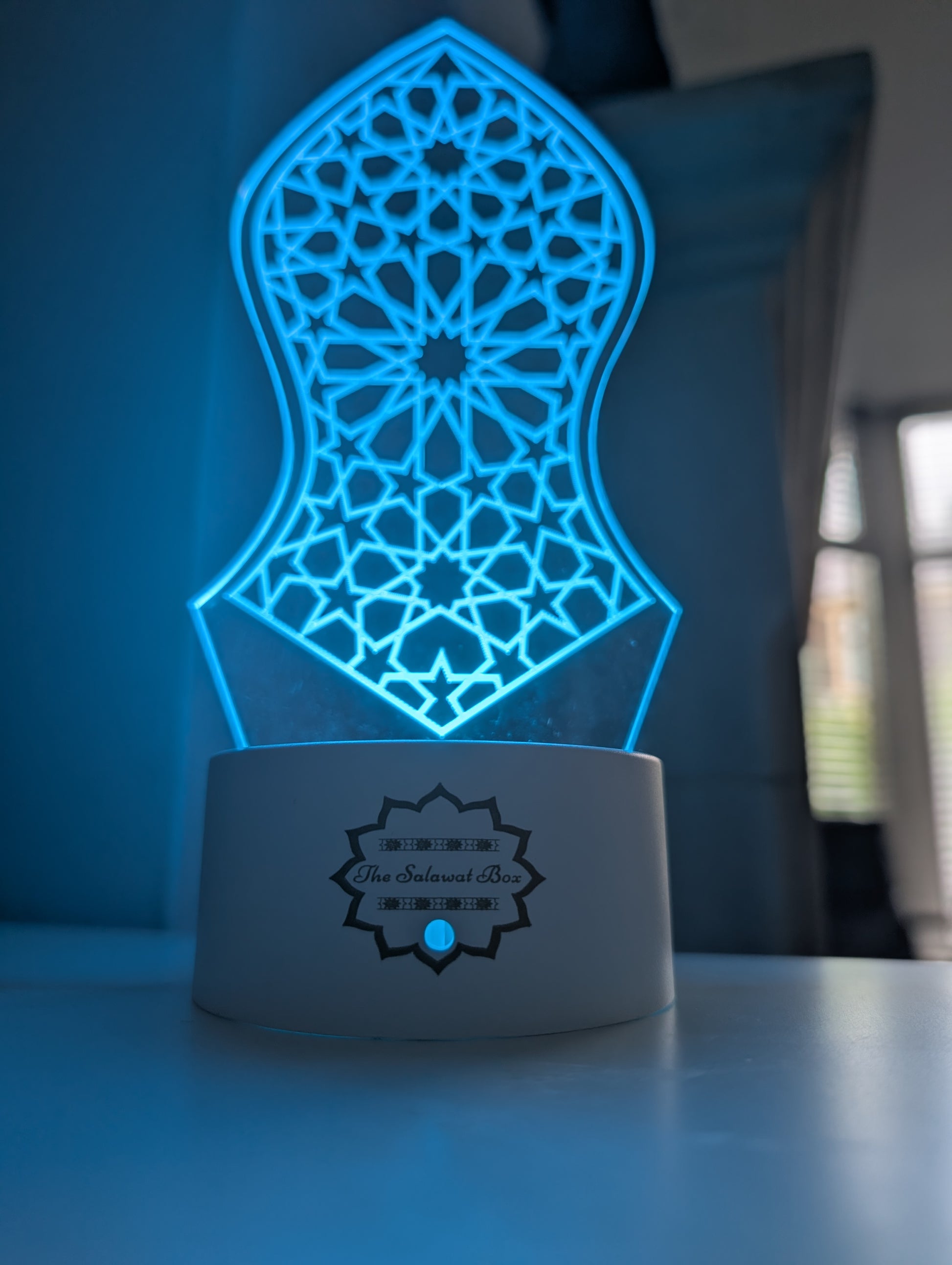 Experience tranquility with the *NEW* Salawat Box First Edition, a speaker designed to soothe the soul through calming salawat recitations. Featuring 16 vibrant LED light options, it creates a peaceful ambiance ideal for meditation and spiritual reflection.